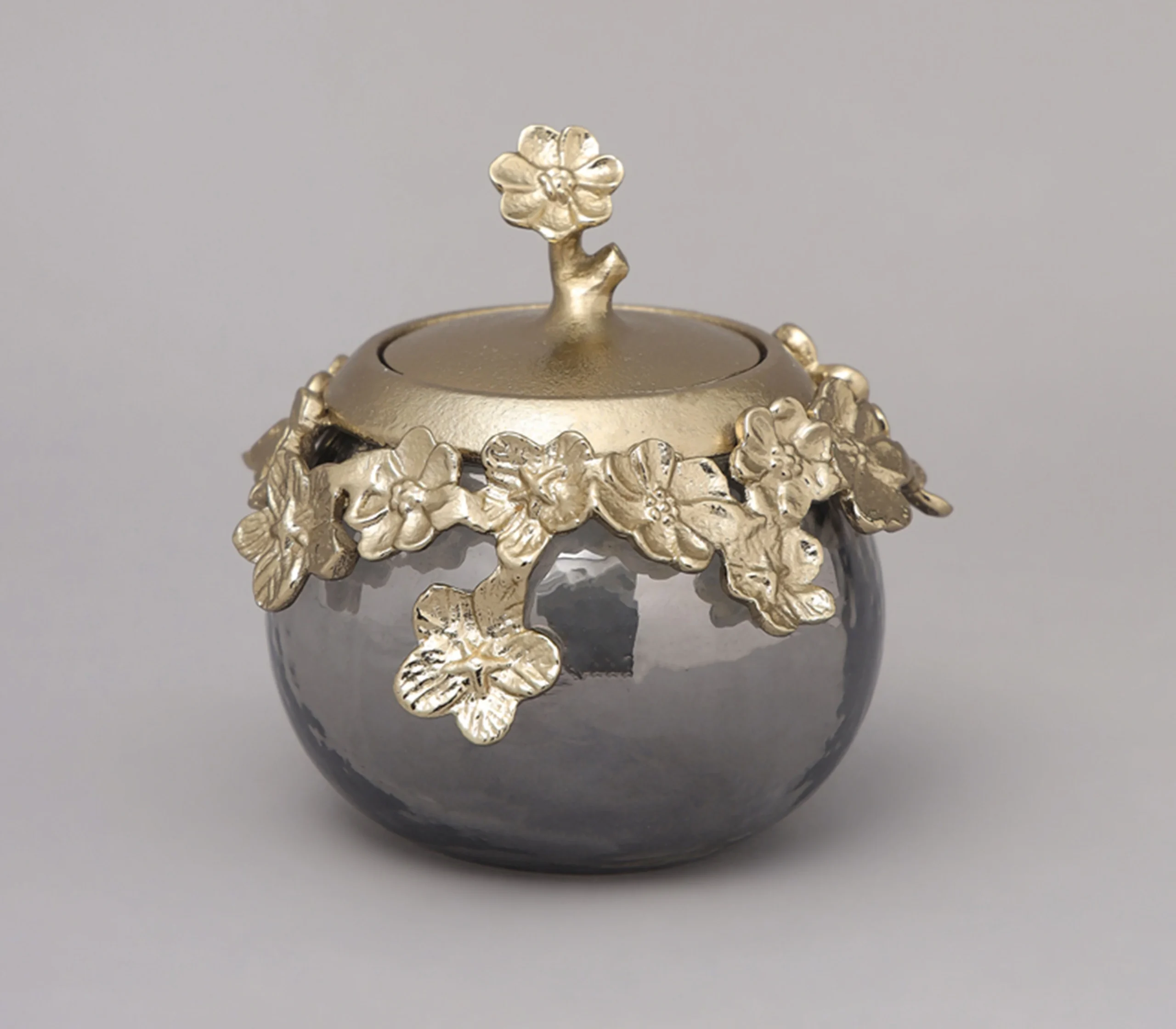 The blossom jar is expertly designed with gold finished virgin aluminium with textured black luster glass. This stunning glass jar is the perfect table decoration for formal and informal events and a statement piece for stylish entertainers and hosts.