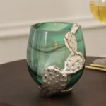 If soft, flickering lighting is what you’re going for, then nothing quite illuminates a space like our cacti votive holder. Crafted with care using green onyx glass and wrapped in gold finished virgin aluminum, this piece is perfect for a relaxing bath or even setting the table at an intimate outdoor grill with your loved ones, bringing the seductive energy of a desert with it.