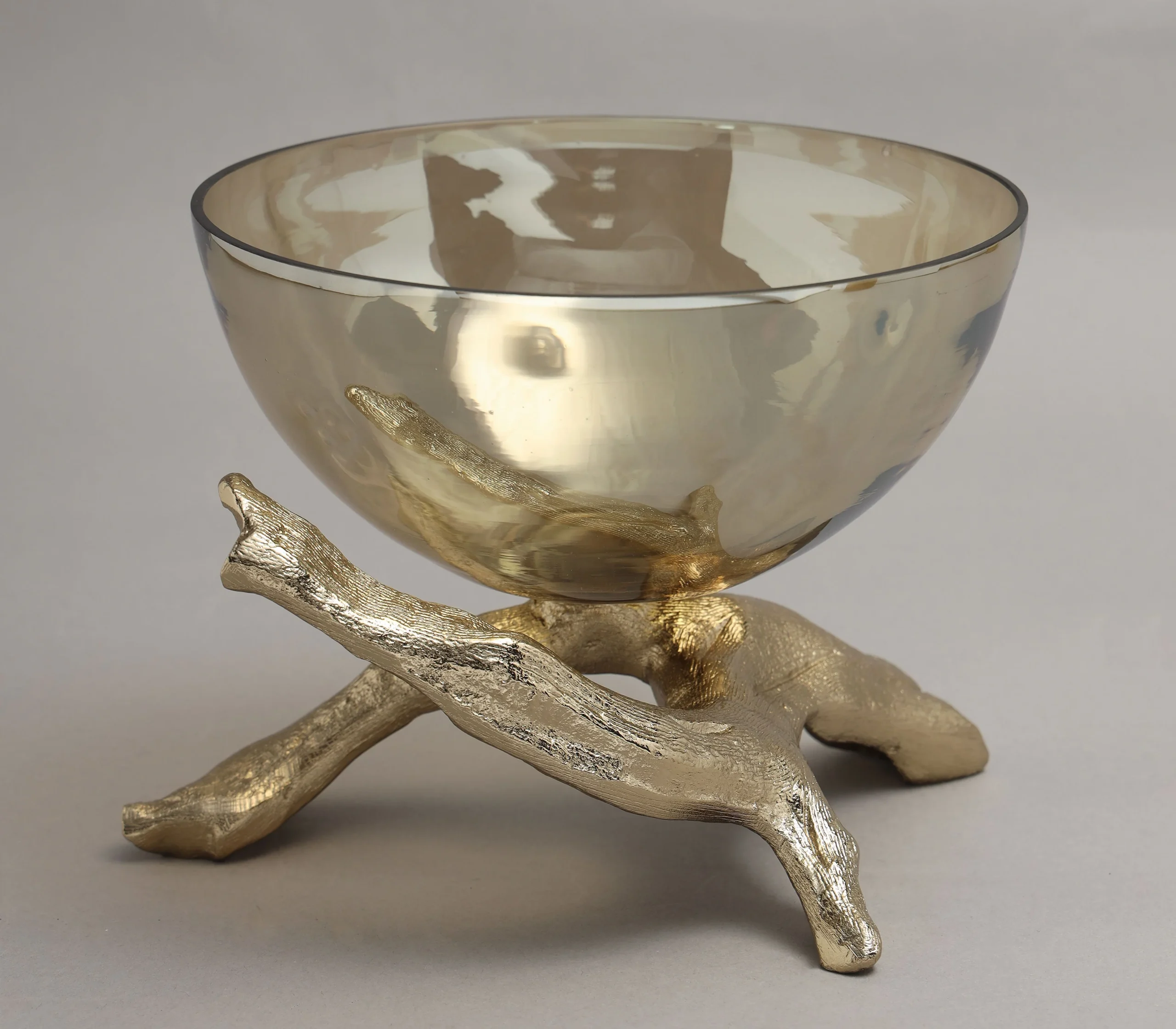 Exquisitely crafted of gold finished virgin aluminium and siege luster glass, this decorative accessory is a suave bowl that can be used anytime, anywhere. Try one in the entryway for keys, small trinkets or with fruits that you can arrange as per your taste.