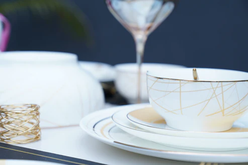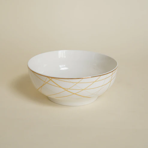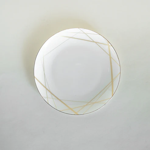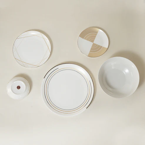Our luxury dinner set is thoughtfully crafted for gifting and adds a touch of sophistication to any home or corporate space. This premium bone-china set includes beautifully designed dinner plates, starter plates, dessert plates, small katori bowls, and serving bowls — making it a perfect choice for both everyday elegance and formal gatherings.