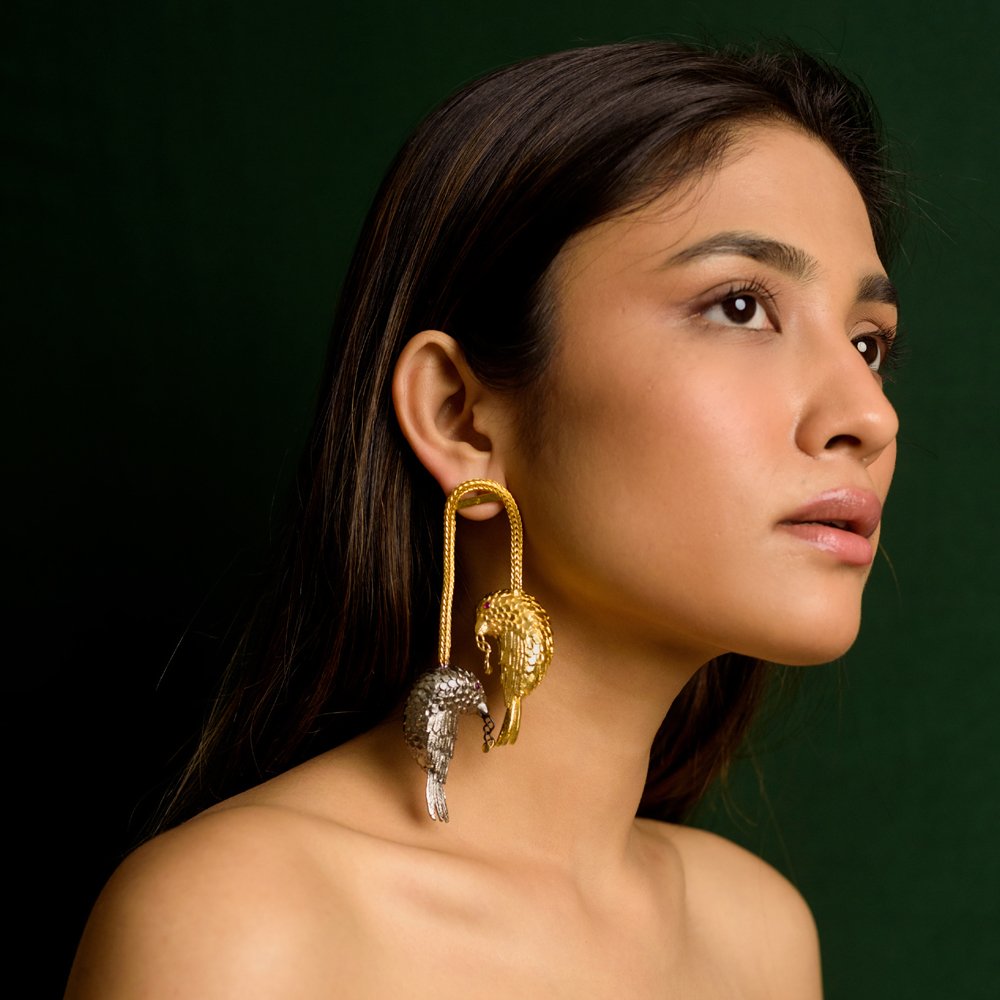 The convergence of the Gold and Rhodium finish of these earrings add a subdued yet charming appeal to the wearer, enhancing any look in the day or at night!