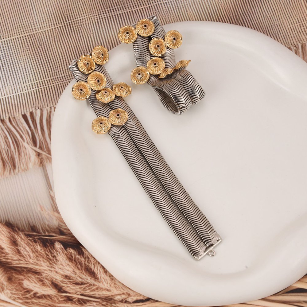 A statement pair of earrings inspired by oysters will definitely be your conversation starter at every party. Wear them open and double them up for a new look. Rhodium plated jewelry. Set in brass.
