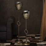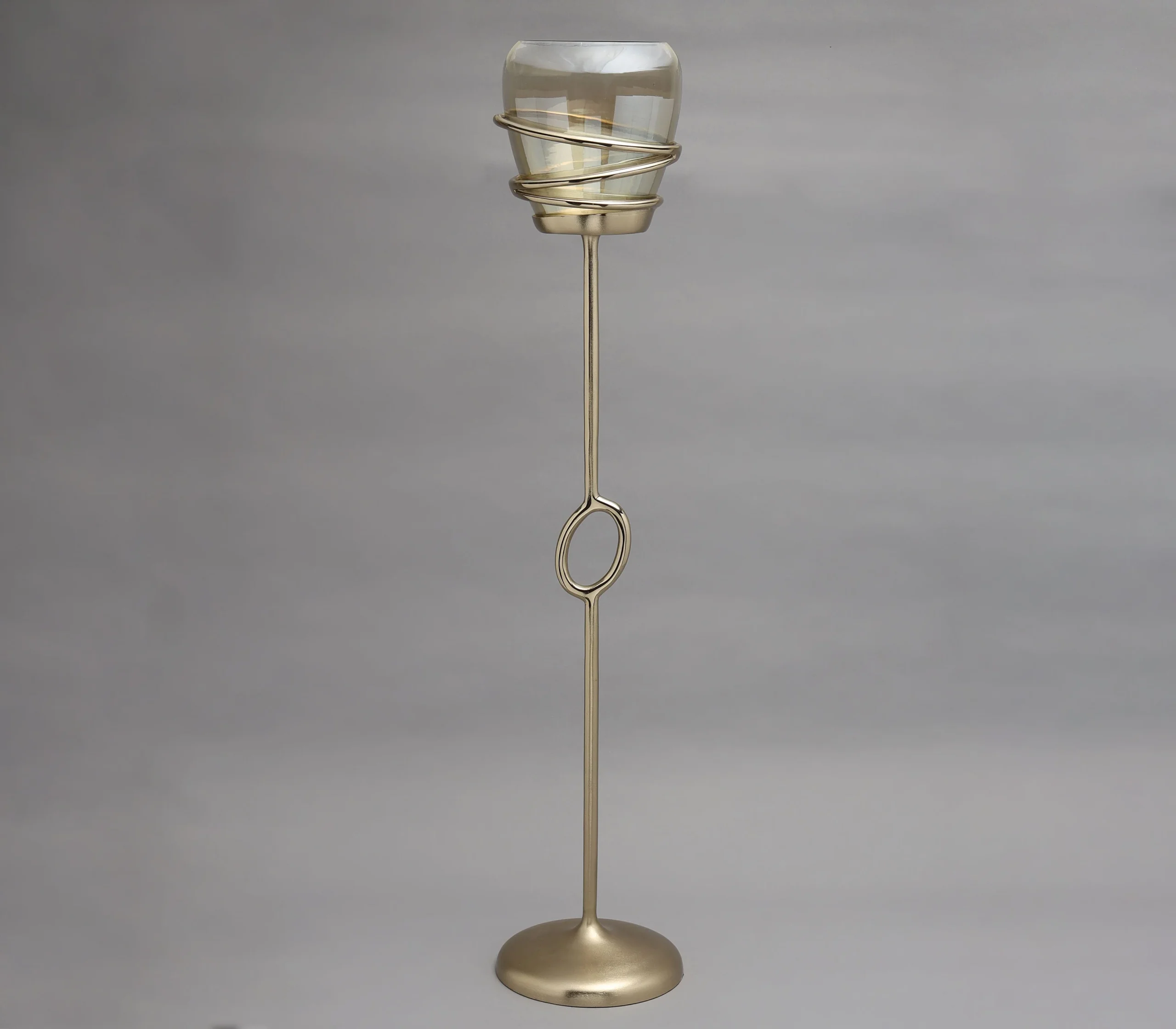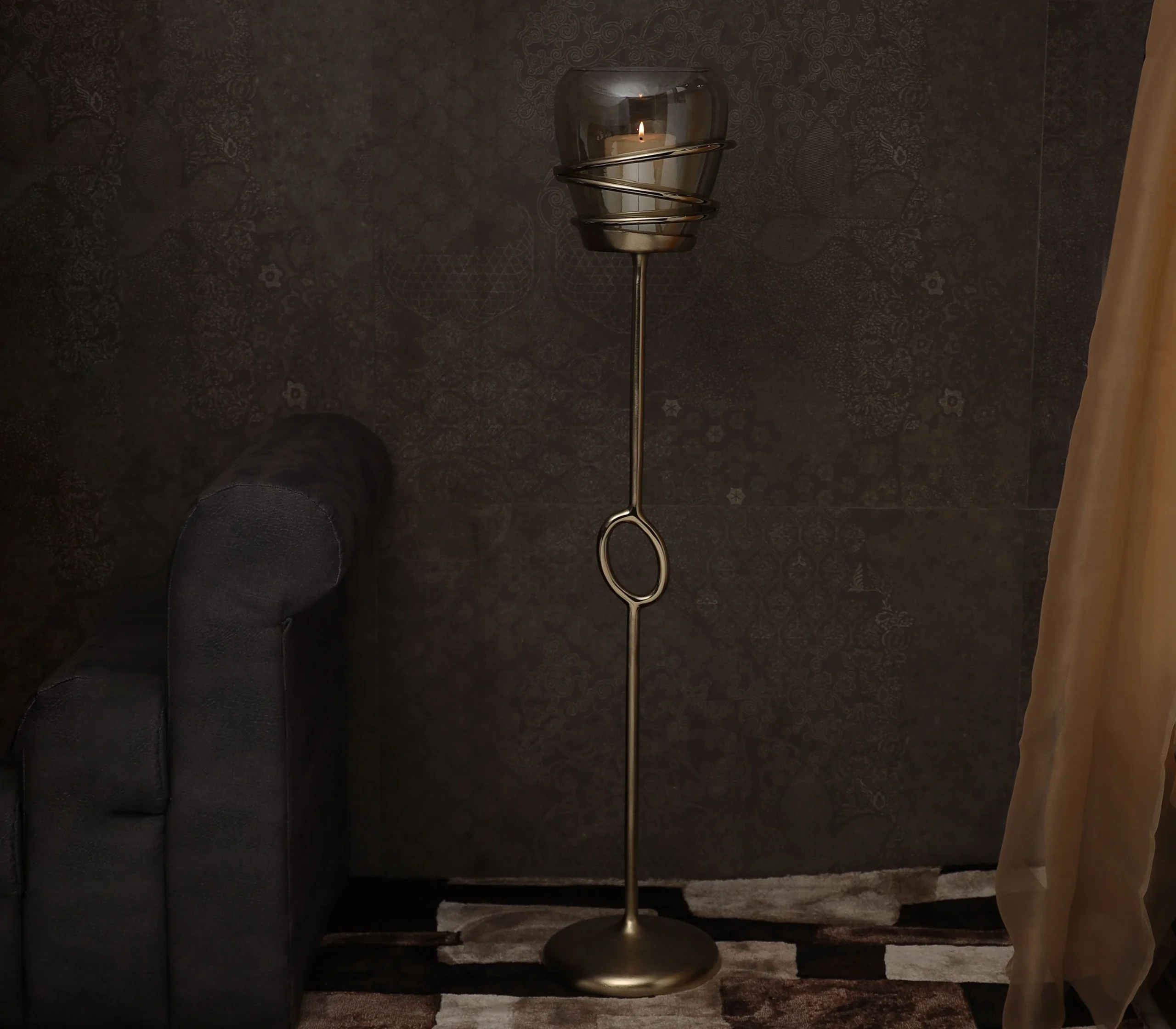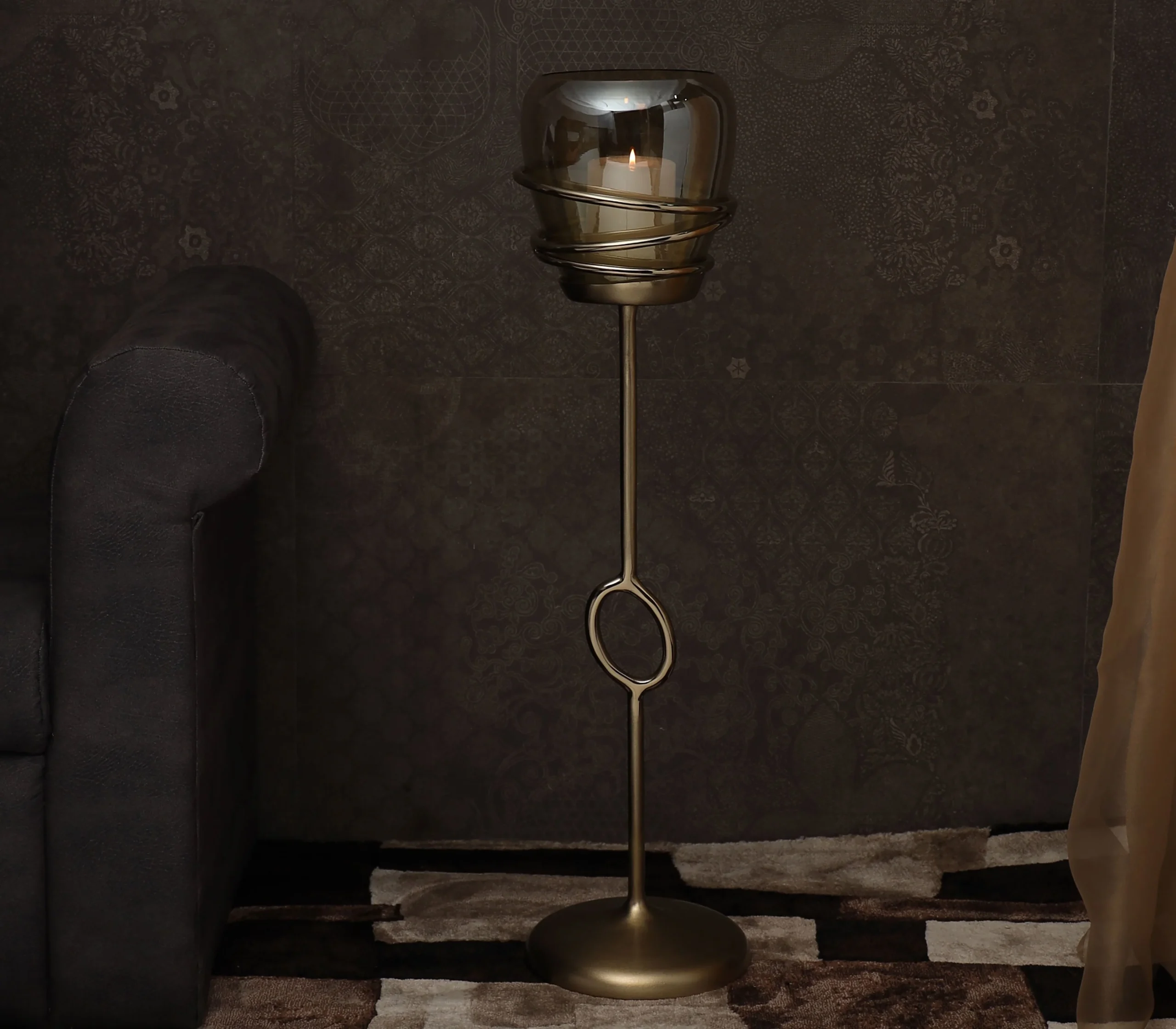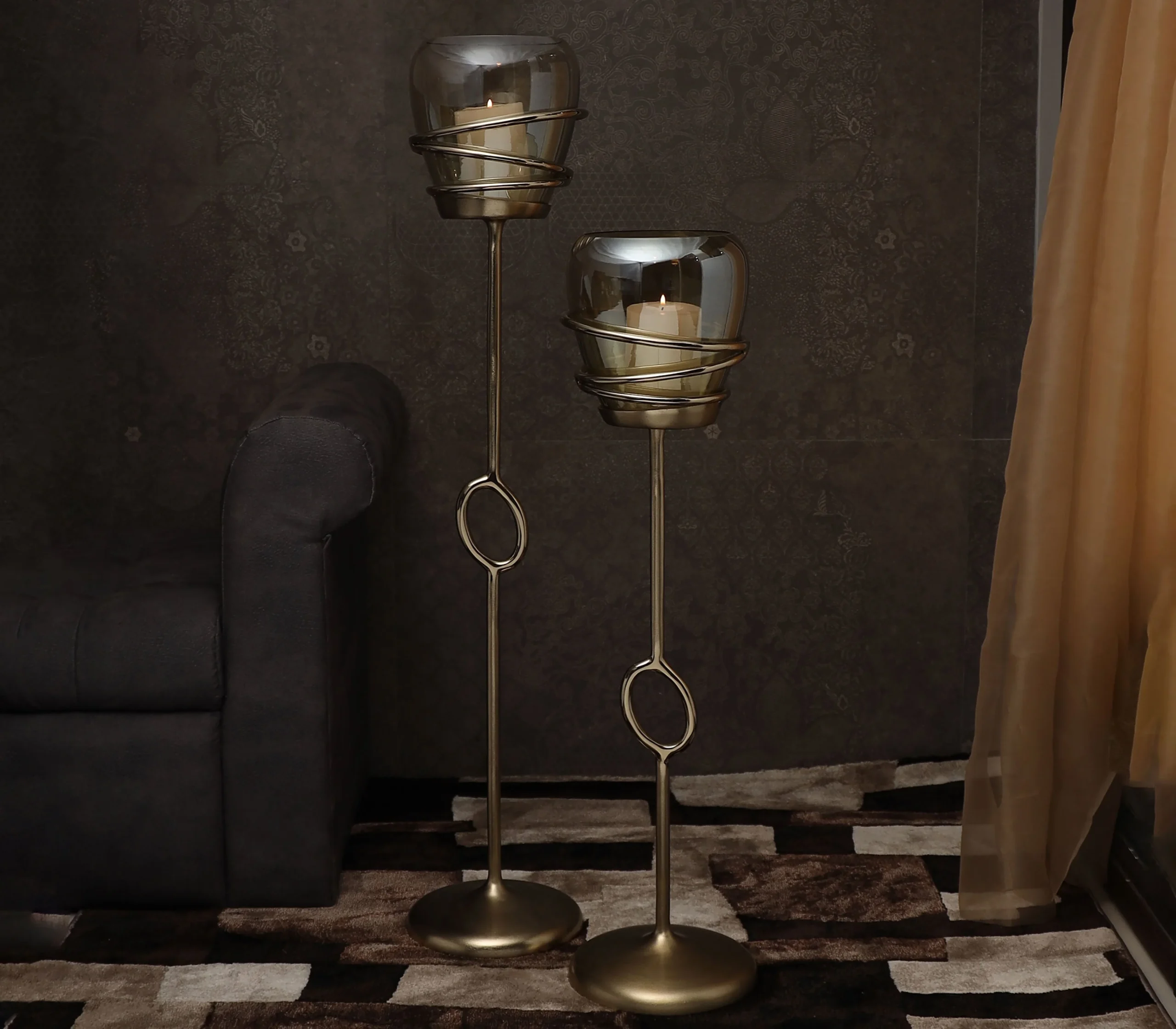 Floor candles are an excellent way of uplifting the ambiance of your home. The holders are impeccably crafted of virgin aluminum with a radiant gold finished and siege  luster glass, these holders look best when placed with other sizes of floor candles for a dramatic and vivid display area.