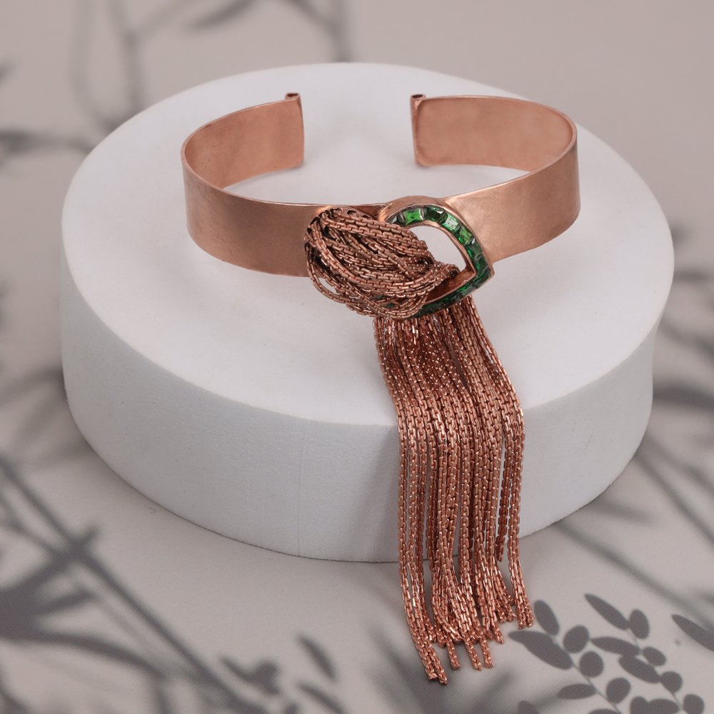 Elevate your style with this dazzling neckpiece from our Party Wear Collection. This exquisite accessory features a cascading design adorned with sparkling Green Swarovski crystals, perfectly paired with a luxurious Rosegold finish. Whether you’re gracing a formal event or celebrating a festive evening, this neckpiece will add a touch of luxury to your ensemble. Ideal as a standout gift or a special treat for yourself! Set in brass metal with Rosegold plating.