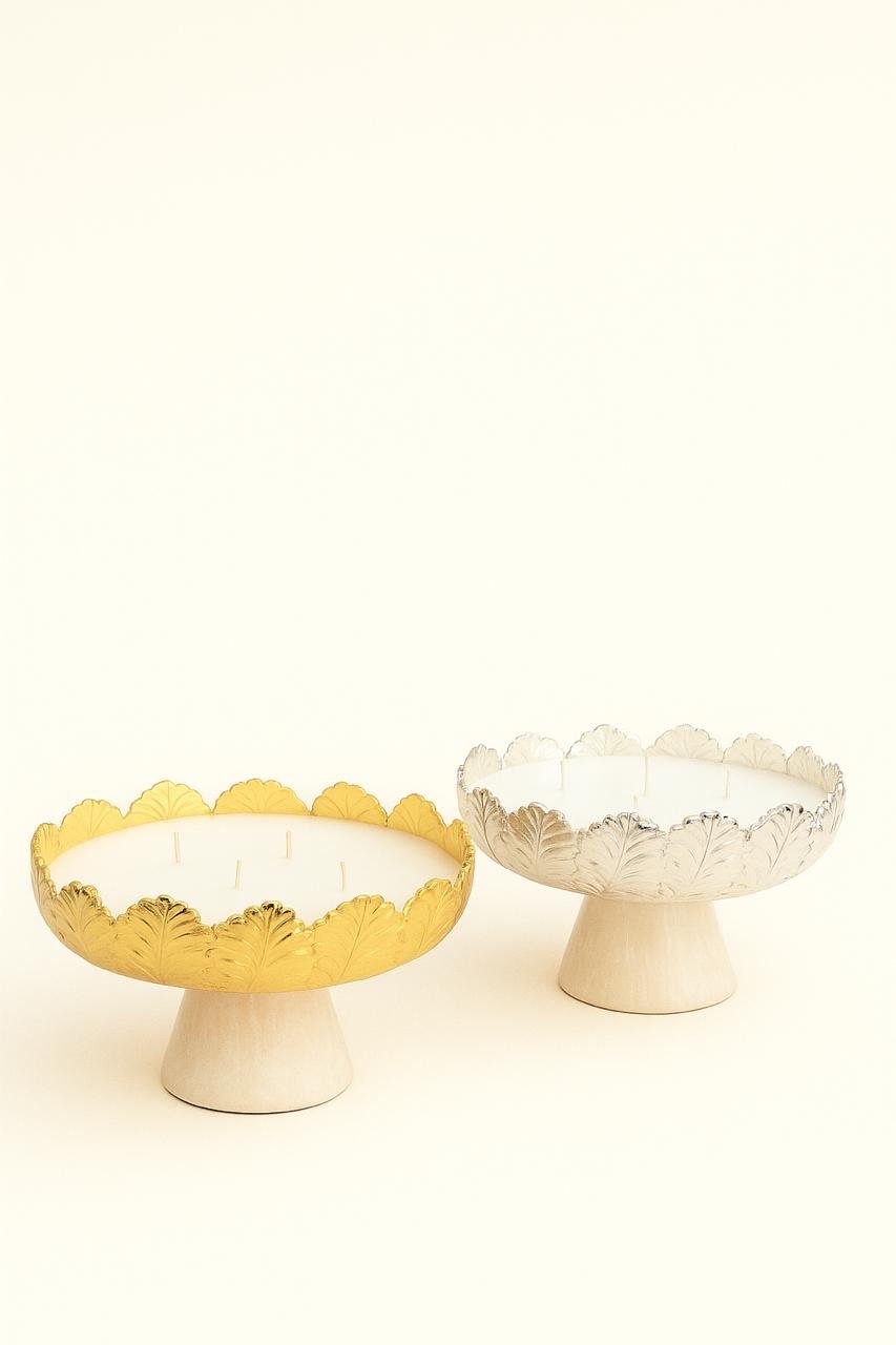 Illuminate your home with timeless elegance with the Vanilla Whisper Golden Candle Bowl. Designed with a radiant gold leaf-inspired rim and a marble-finish pedestal base, this luxury statement piece combines sophistication with functionality. Infused with a soothing vanilla fragrance, it creates a warm, inviting ambiance while doubling as a striking décor accent for your living space. Perfect for festive evenings, dinner tables, or as a centerpiece.